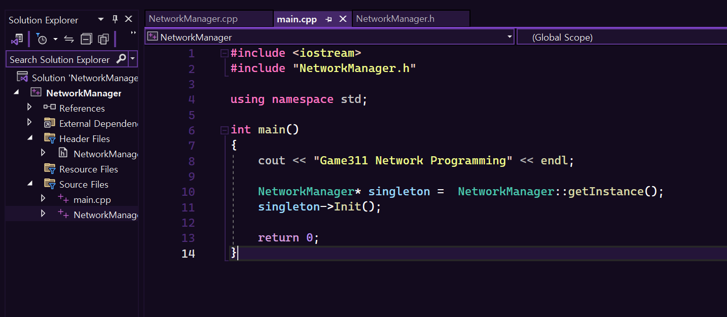 - In the main.cpp, with 'getInstance()', you can assign the NetworkManager singleton instance.