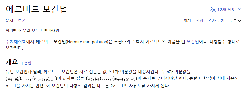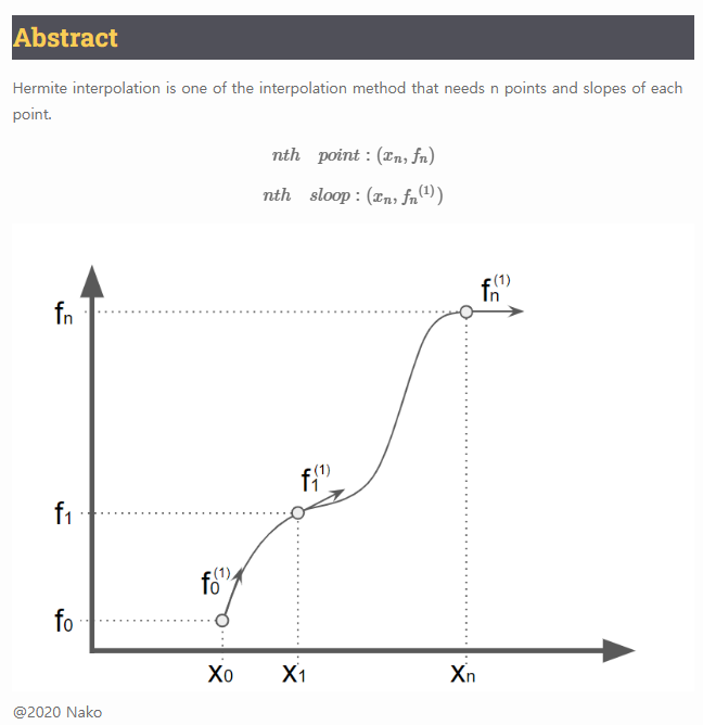 - 다른 자료들을 더 뒤져보니까 이 보간의 경우 각 점의 기울기도 따지는 모양이다. 즉 1차 미분값을 y에 넣는 듯하다. 뭐...음....싱기하네