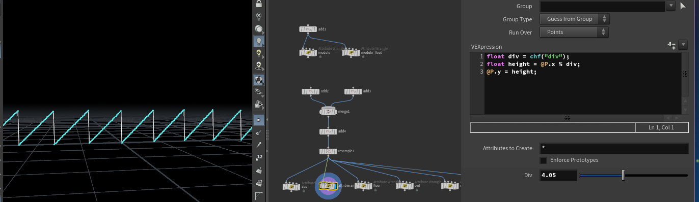 - %를 이용해서 sawtooth 모양을 만들 수 있다. div 값을 조절해서 크기를 바꿀 수 있다
